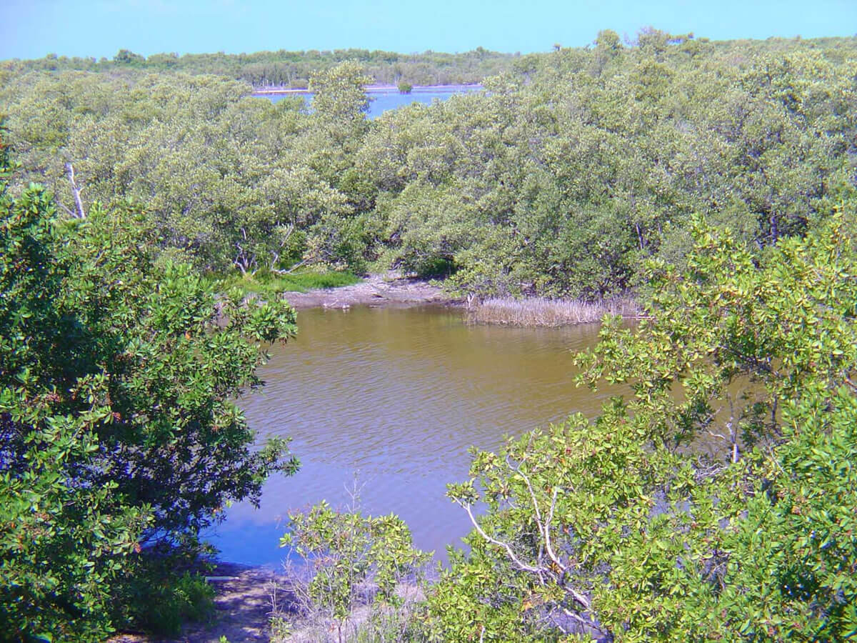 Although the Banco Chinchorro Biosphere Reserve is predominantly a marine environment, it does possess a small terrestrial component, comprising just 0.4% of the core area. This terrestrial zone is characterized by halophyte or coastal dune vegetation and mangroves adapted to the saline substratum. The buffer area also includes a large coral circular strip and a substantial marine zone extending to depths of up to 60 meters (200 feet).