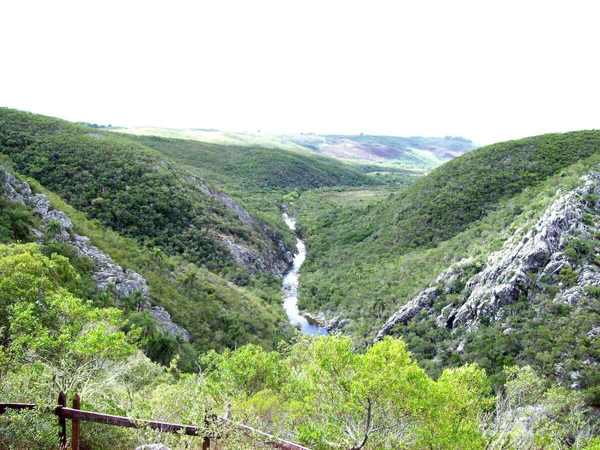 The Bioma Pampa-Quebradas del Norte Biosphere Reserve is situated on the eastern side of the Cuchilla de Haedo, featuring a landscape marked by quebradas (ravines and gorges) and high embankments of basaltic coasts. The region experiences a humid subtropical climate with annual rainfall exceeding 1,000 mm (40 inches), fostering lush, subtropical grasslands.