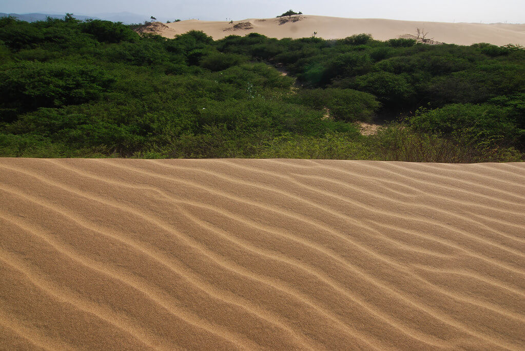 Despite the harsh desert conditions, Médanos de Coro National Park supports a range of plant and animal species adapted to survive in this arid environment. The vegetation is sparse, with thorny shrubs dominating the landscape. The park protects part of the Paraguaná xeric scrub ecoregion, which consists of hardy, drought-resistant plants that thrive in the dry climate.