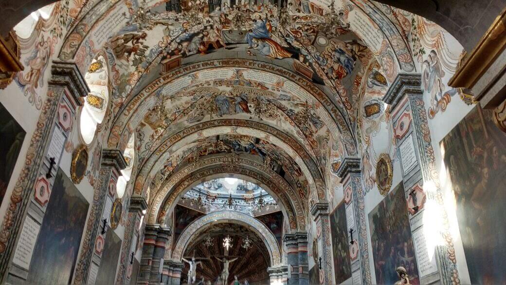 The Sanctuary's interior is adorned with an extraordinary collection of frescoes and oil paintings that cover its walls, ceilings, and altars. The works of Miguel Antonio Martínez de Pocasangre, a prominent 18th-century artist, dominate the Sanctuary. His murals depict scenes from the Passion of Christ and various Biblical narratives, rendered in vivid detail and dramatic compositions.