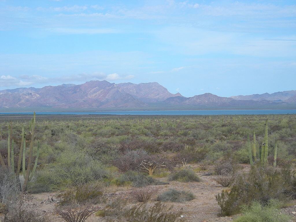 Tiburón Island lies off the coast of the Mexican state of Sonora, separated from the mainland by the Infiernillo Channel. This region forms part of the larger Sonoran Desert ecosystem. The island's terrain is characterized by arid desert landscapes, rugged mountain ranges such as the Sierra Kunkaak, and sparse vegetation dominated by cacti, shrubs, and desert grasses. Its highest peak rises to approximately 1,200 m (3,937 ft), providing breathtaking views of the surrounding waters and the arid mainland.