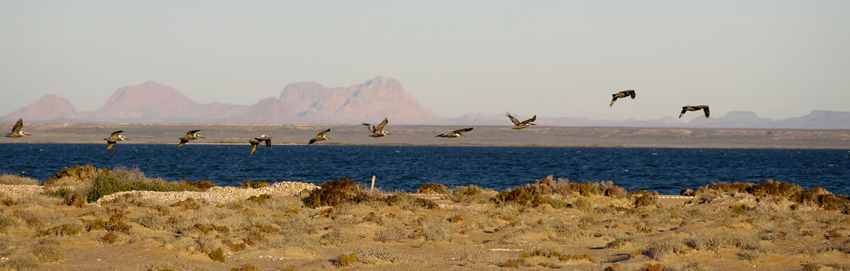 The Whale Sanctuary of El Vizcaíno is significant for Grey Whales and supports a wide range of other marine and terrestrial species. Bottlenose dolphins, California sea lions, and harbor seals are frequent visitors to these waters. At the same time, four marine turtles, including the endangered Green and Loggerhead turtles, utilize the lagoons for feeding and as nursery grounds. The surrounding wetlands, marshes, and mangroves provide habitats for numerous bird species, including a substantial population of ospreys and over half of Mexico's wintering population of Brant Geese.